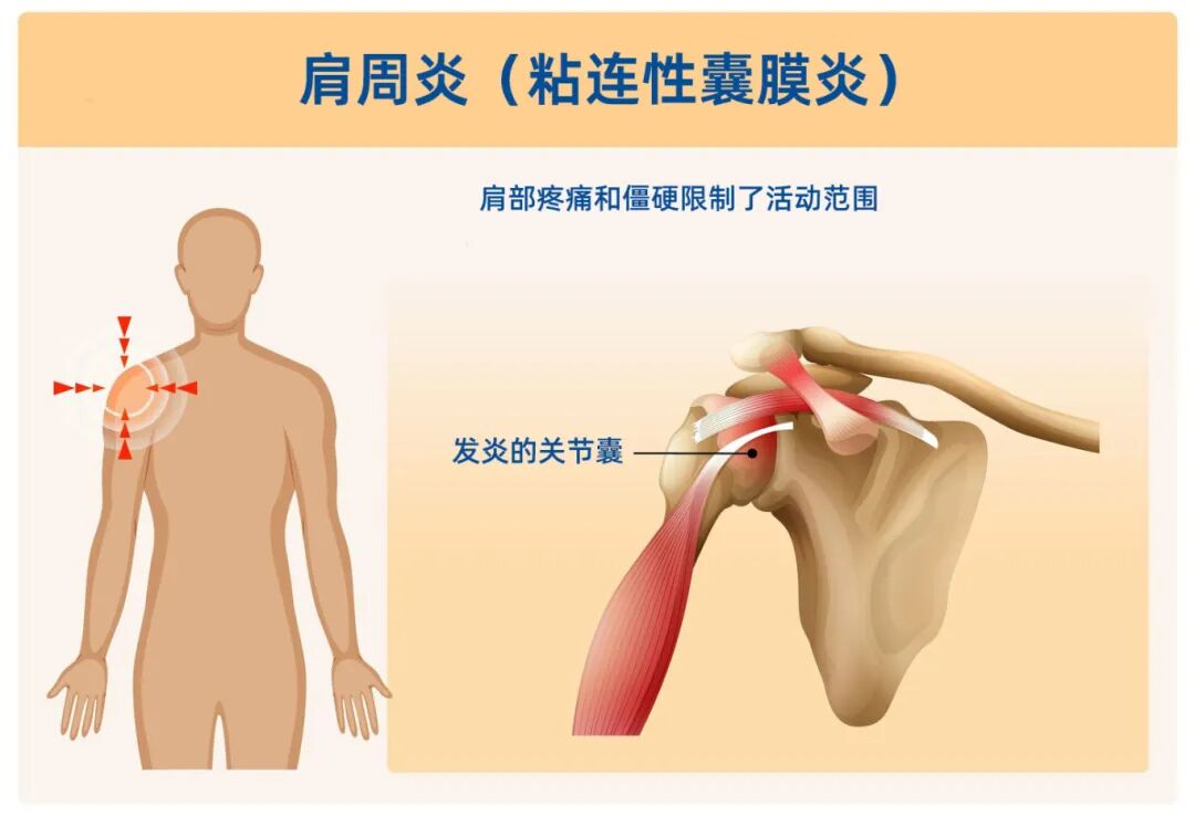 肩周炎,俗称\x26quot;冻结肩\x26quot;或\x26quot;五十肩\x26quot;,是一种多发于40-70岁人群的常见疾病,女性发病率高于男性。